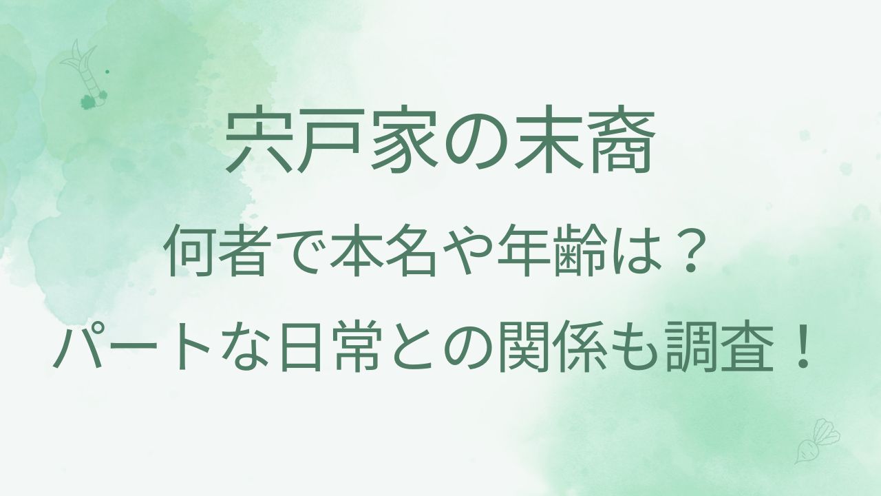 今回は、宍戸家の末裔チャンネルは何者で年齢や本名は?パートな日常の荒木さんとの関係も調査!と題してお送りしました。